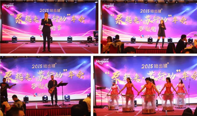 晚上19:00,為回饋廣大客戶一直以來對皓齒健的支持與陪伴,我們特地準(zhǔn)備了一場美輪美奐的視聽大宴。流行歌曲,民族舞蹈,專業(yè)樂隊(duì)?wèi)?yīng)有盡有,現(xiàn)場氣氛一度被推向高潮!